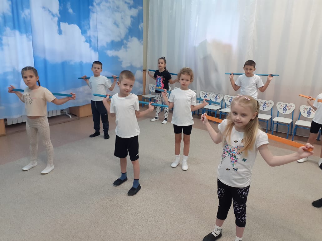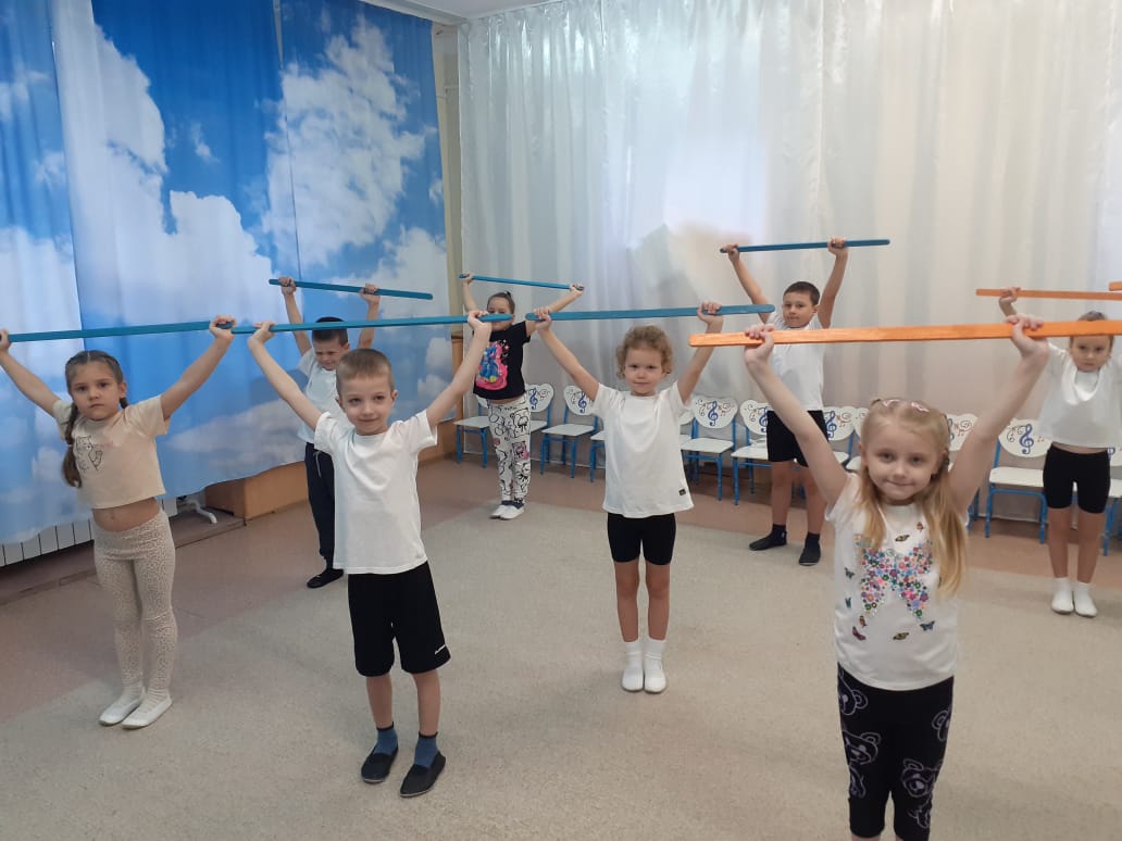 Наши дети подготовительной группы с удовольствием делают утреннюю гимнастику.